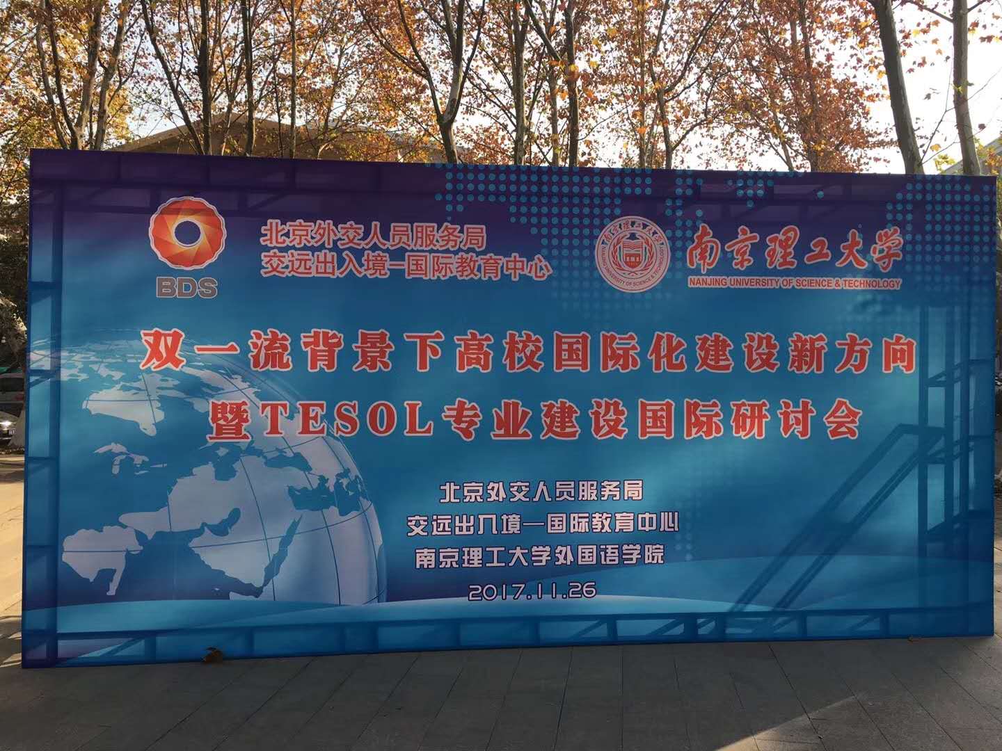 2017年11月26日,由北京外交人员服务局交远国际教育中心和南京理工大学联合举办的“双一流背景下高校国际化建设新方向暨TESOL专业建设国际研讨会”在学校科技会堂举行,外交部前大使、外交学院前党委书记兼常务副院长袁南生,南京理工大学副校长钱林方,北京外交人员服务局北京交远因私出入境公司总经理兼交远国际教育中心主任辛颖和常务副主任杨宏,南京大学外国语学院院长杨金才教授等出席会议。来自江苏省教育部门、各高校、重点中学及培训机构共200余名领导与嘉宾参加会议。会议由北京外交人员服务局交远国际教育中心副主任刘志